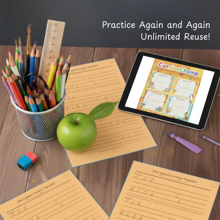 With no physical limitations, the CursiveChamp Practice Kit is designed to grow with your child, making it a long-lasting and eco-friendly tool for learning.